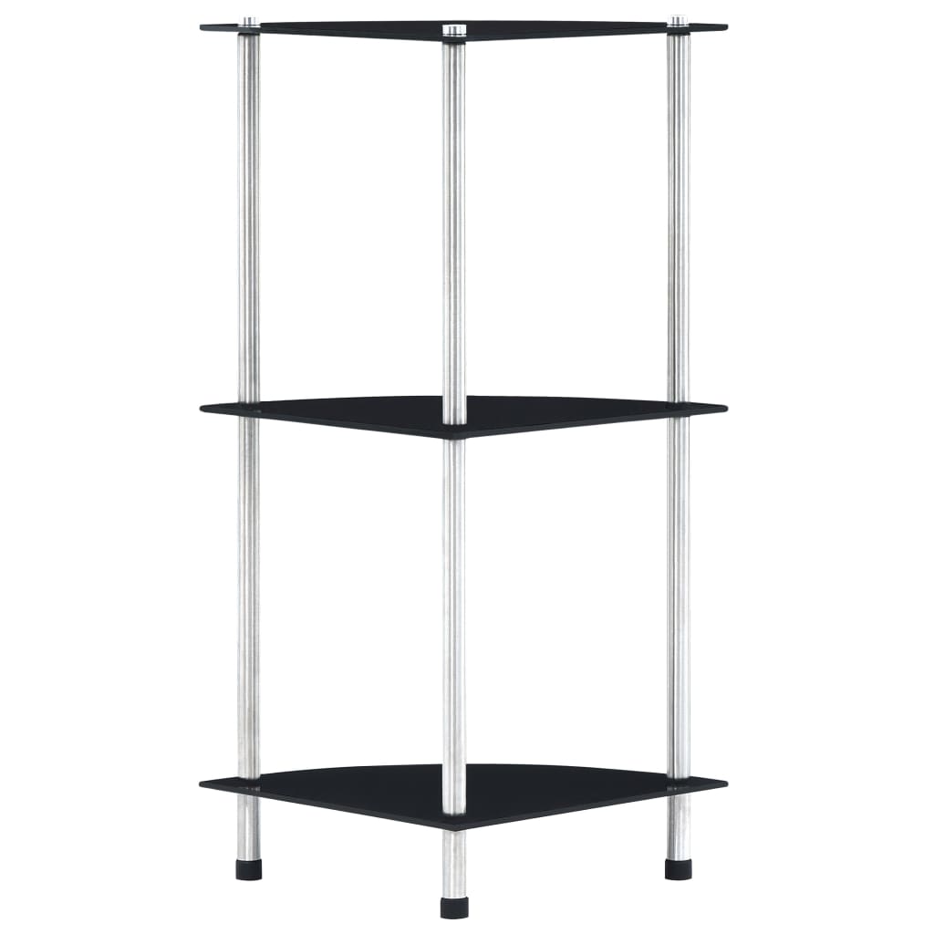 Polica 3-nadstropna črna 30x30x67 cm kaljeno steklo