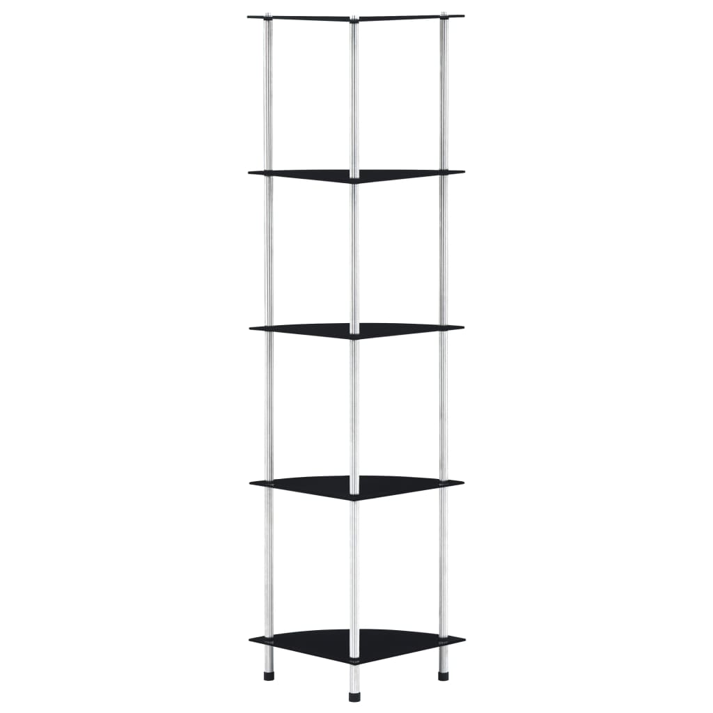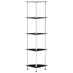 Polica 5-nadstropna črna 30x30x130 cm kaljeno steklo