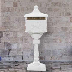 Poštni nabiralnik s podstavkom starinski stil aluminij bel