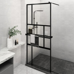 Pregrada za tuš s polico črna 100x195 cm ESG steklo in aluminij