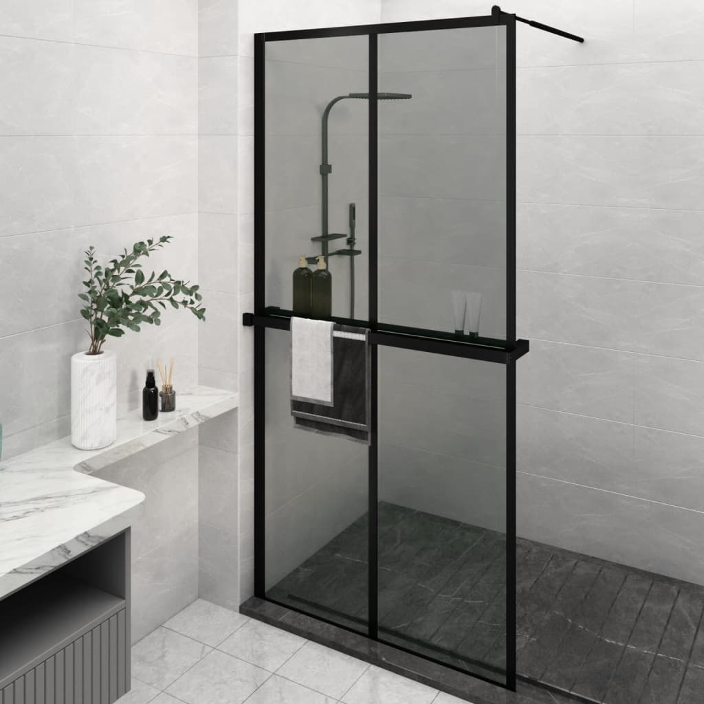 Pregrada za tuš s polico črna 118x190 cm ESG steklo in aluminij