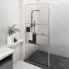 Pregrada za tuš s polico krom 100x195 cm ESG steklo in aluminij