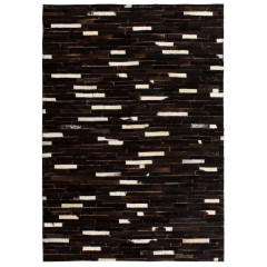 Preproga iz koščkov pravega usnja 120x170 cm proge črna/bela