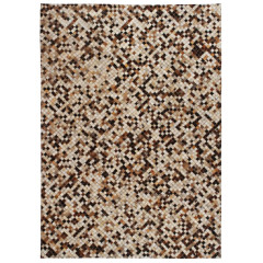 Preproga iz koščkov pravega usnja 120x170cm kvadrati rjavo/bela