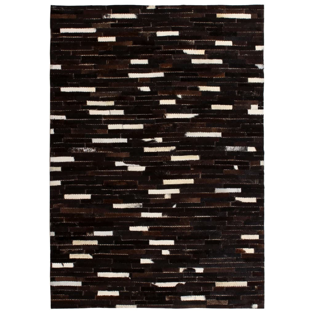 Preproga iz koščkov pravega usnja 80x150 cm proge črna/bela