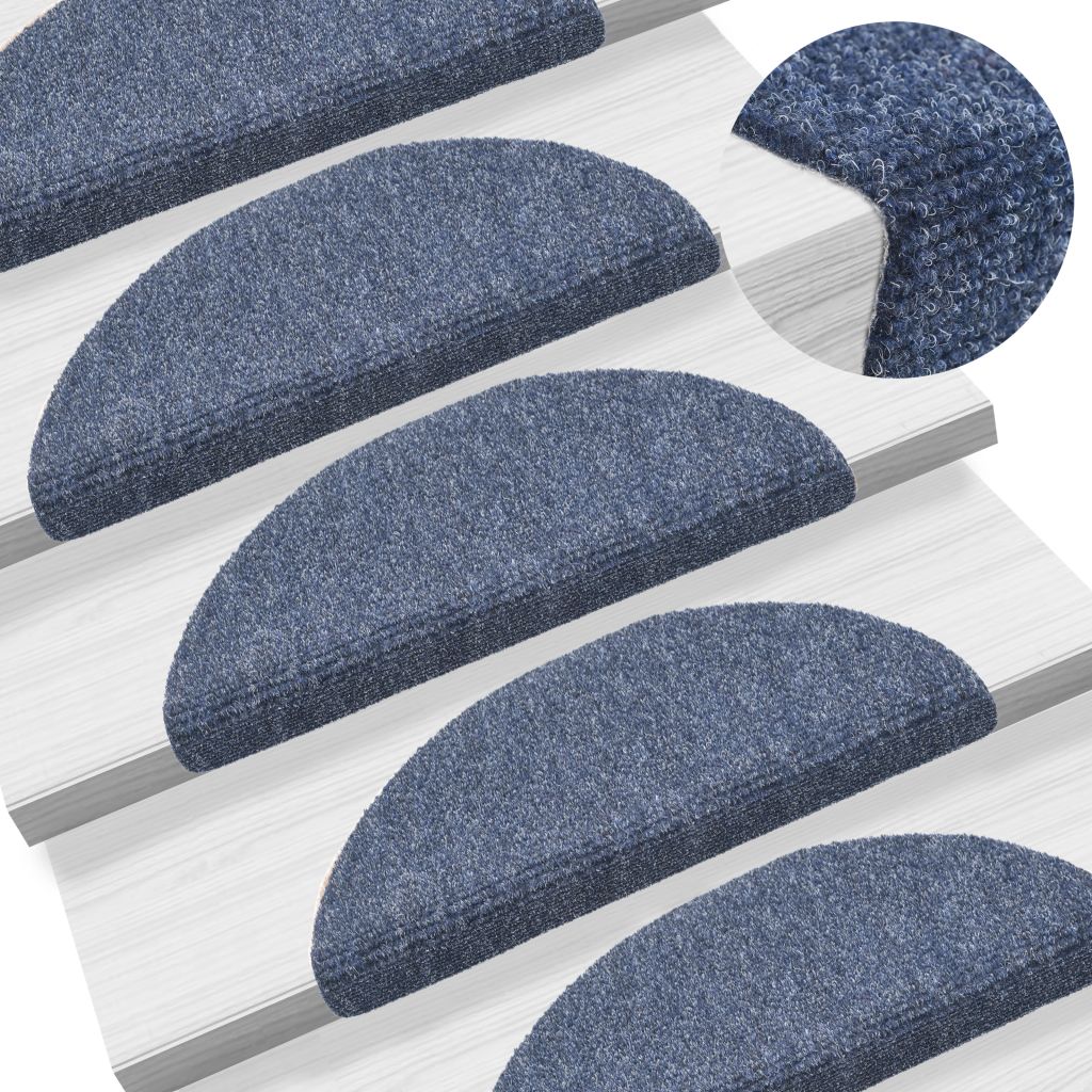Preproge za stopnice samolepilne 15 kosov 56x17x3 cm modre polkrožne