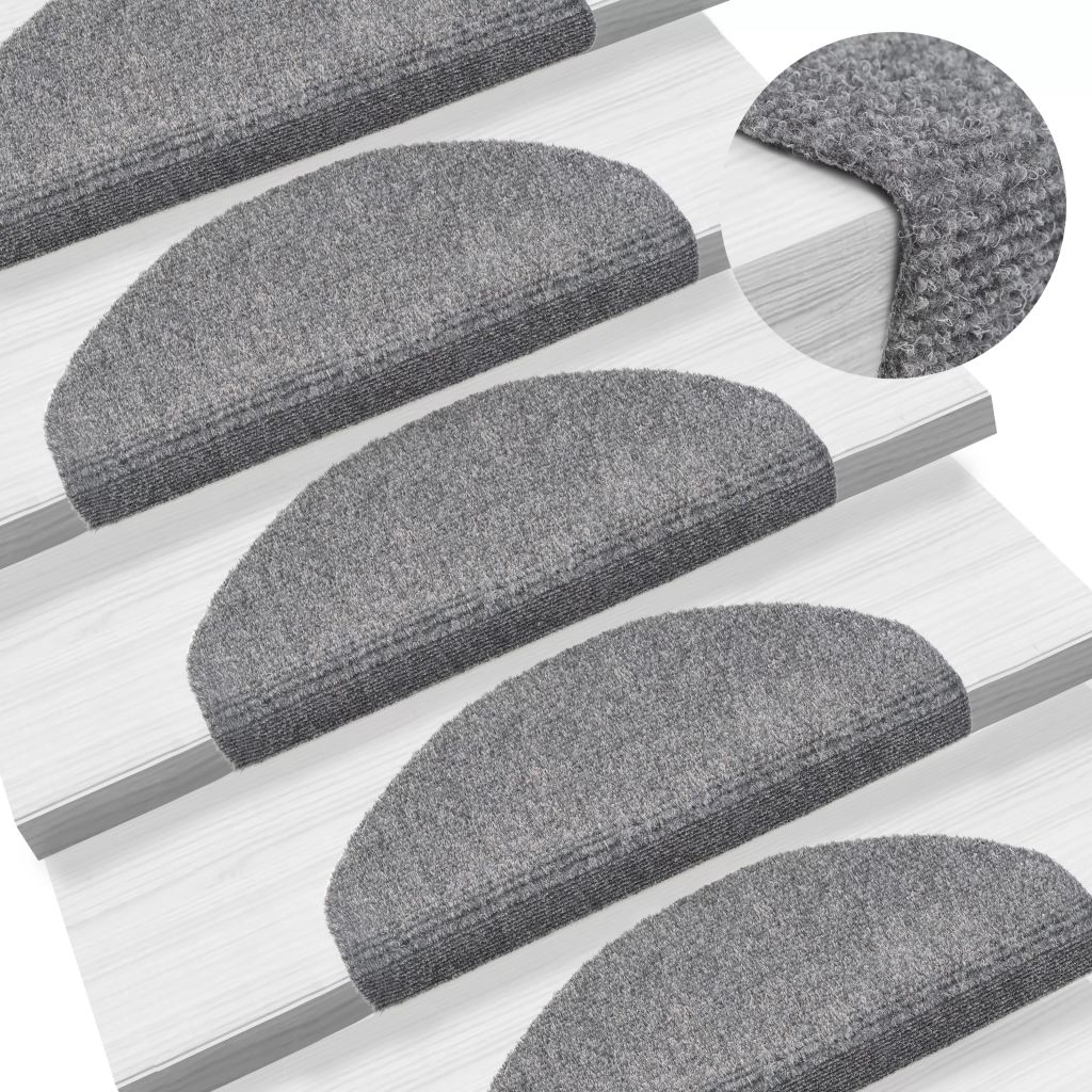 Preproge za stopnice, samolepilne, 15 kosov, 65 x 21 x 4 cm, svetlo sive, polkrožne, velike