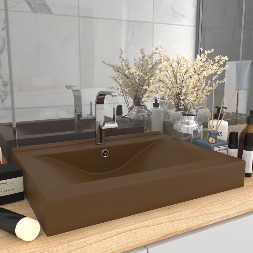 Razkošen umivalnik z luknjo mat krem 60x46 cm keramičen