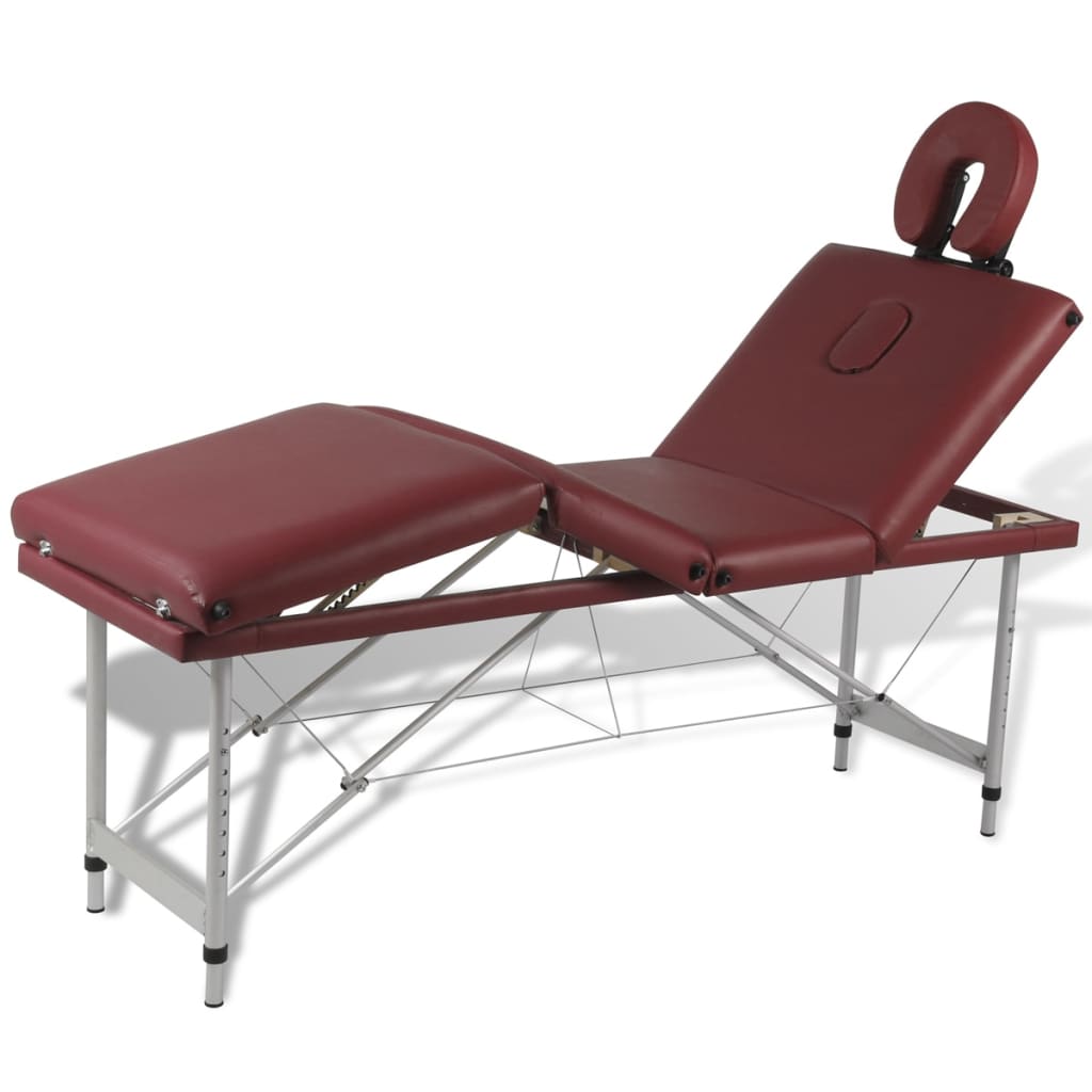 Rdeča zložljiva masažna miza s 4 območji in aluminjastim okvirjem