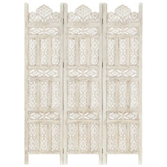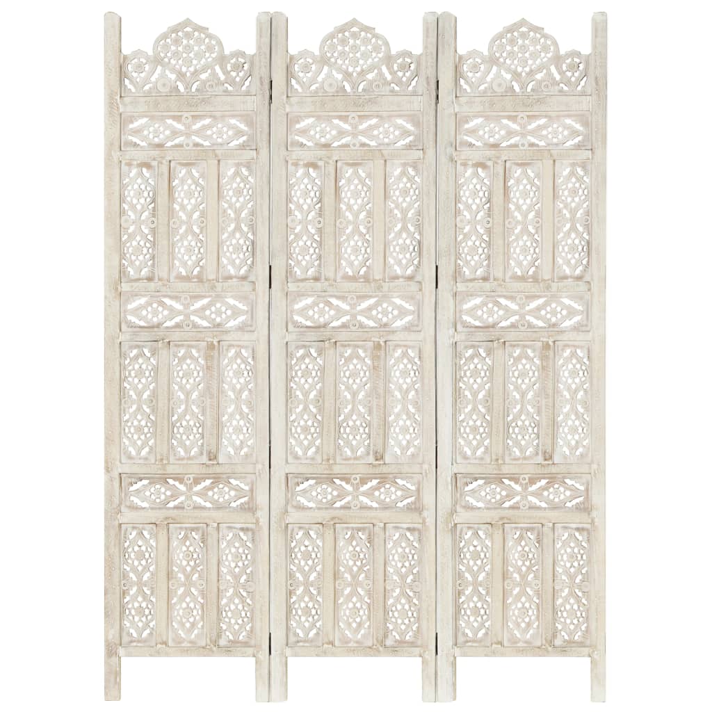 Ročno izrezljan paravan 3-delni bel 120x165 cm trden mangov les