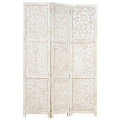 Ročno izrezljan paravan 3-delni bel 120x165 cm trden mangov les