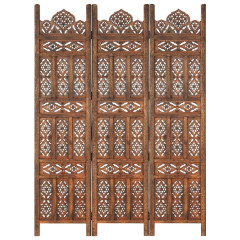 Ročno izrezljan paravan 3-delni rjav 120x165cm trden mangov les