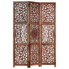 Ročno izrezljan paravan 3-delni rjav 120x165cm trden mangov les