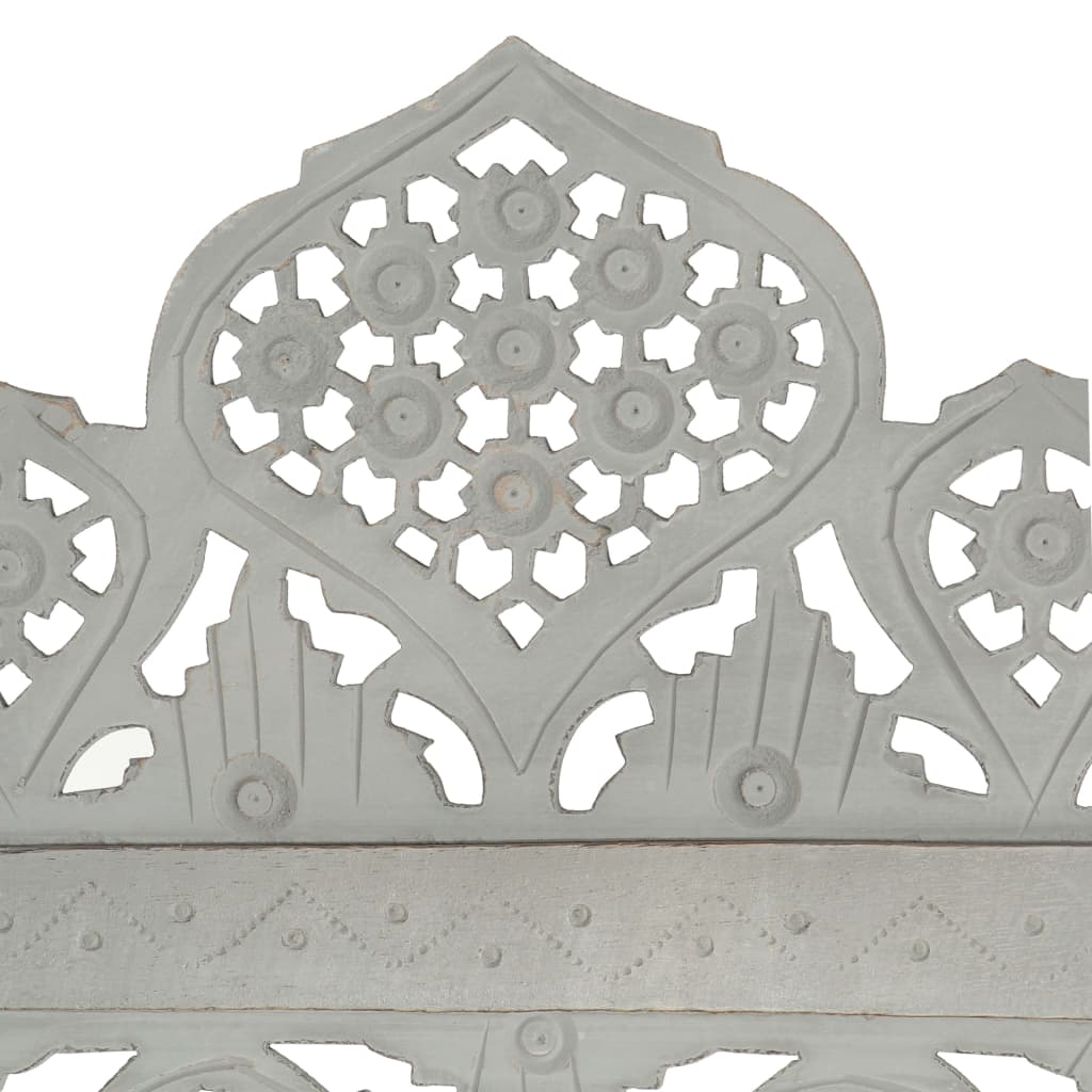 Ročno izrezljan paravan 3-delni siv 120x165 cm trden mangov les
