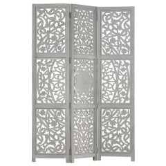 Ročno izrezljan paravan 3-delni siv 120x165 cm trden mangov les