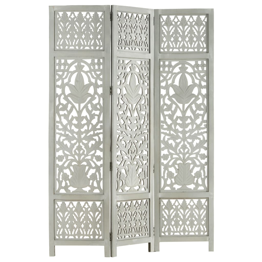 Ročno izrezljan paravan 3-delni siv 120x165 cm trden mangov les