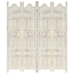 Ročno izrezljan paravan 4-delni bel 160x165 cm trden mangov les