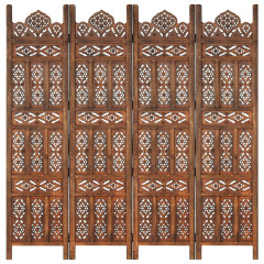 Ročno izrezljan paravan 4-delni rjav 160x165cm trden mangov les