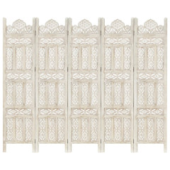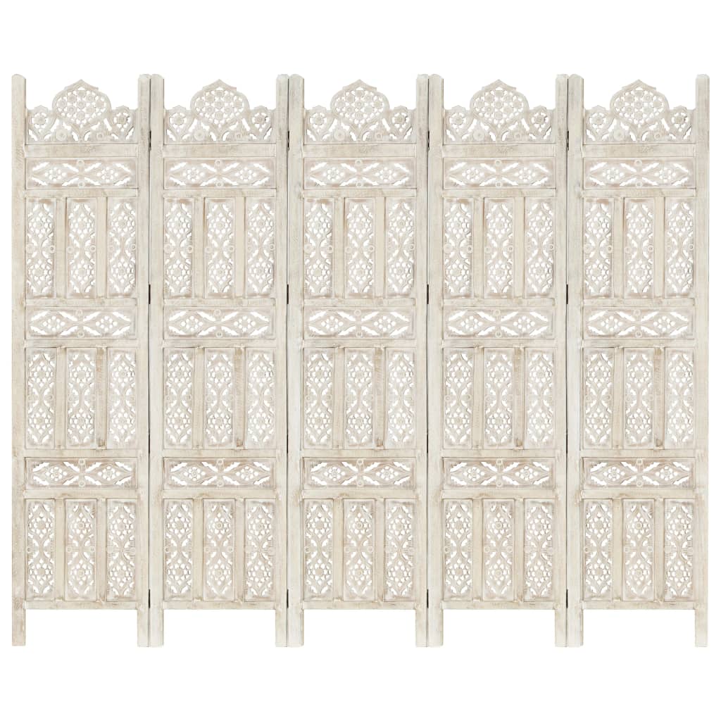 Ročno izrezljan paravan 5-delni bel 200x165 cm trden mangov les
