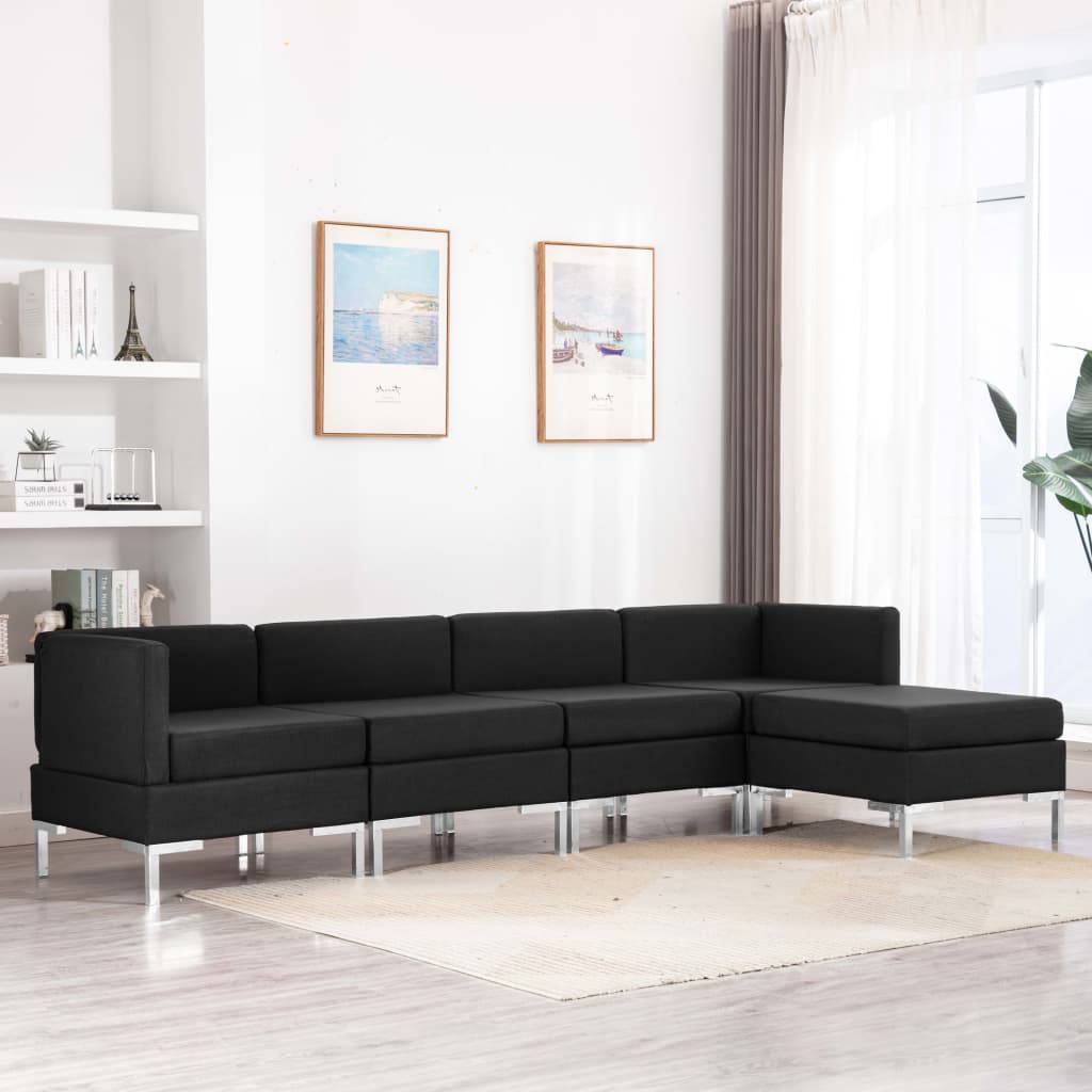 Sedežna garnitura 5-delna iz blaga črna