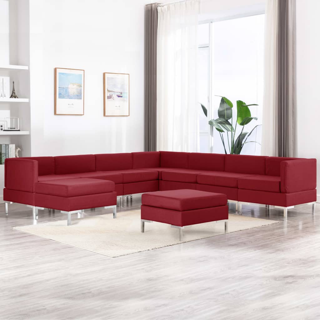 Sedežna garnitura 9-delna blago vinsko rdeča
