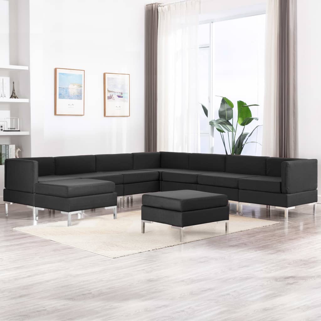 Sedežna garnitura 9-delna iz blaga črna