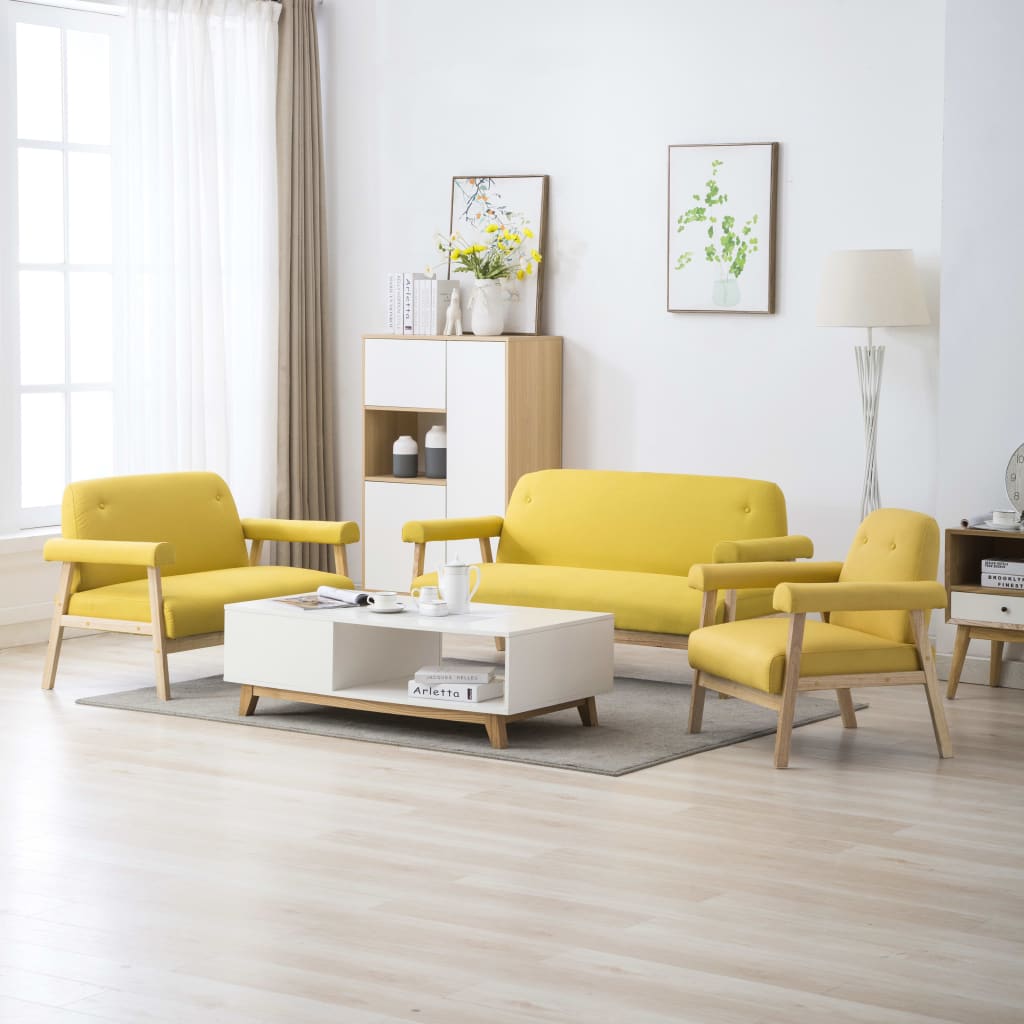 Sedežna garnitura za 6 oseb 3-delna iz blaga rumena