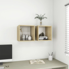 Stenska omarica 2 kosa bela in sonoma hrast 37x37x37 cm