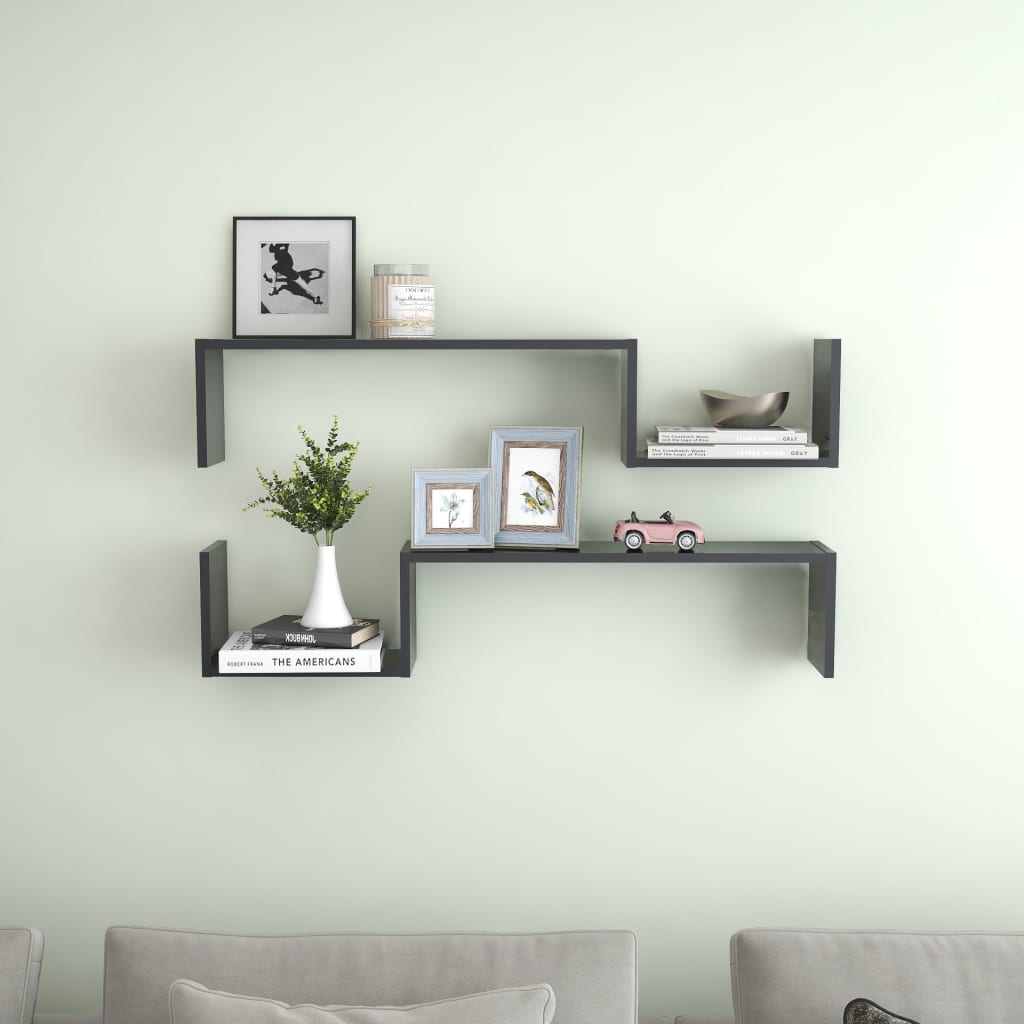 Stenska polica 2 kosa siva 100x15x20 cm iverna plošča