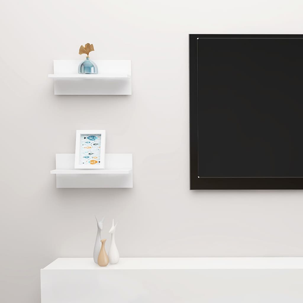 Stenska polica 2 kosa visok sijaj bela 40x11,5x18 cm