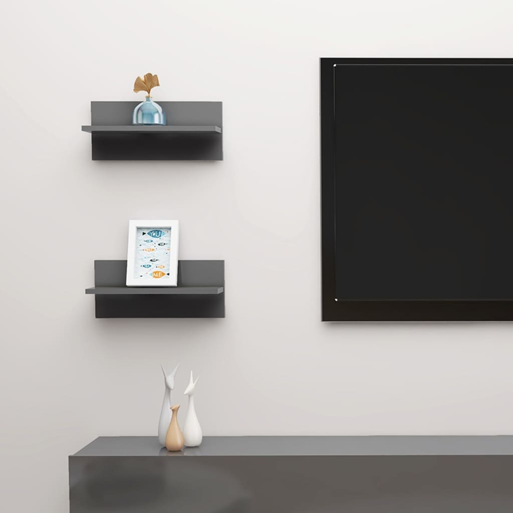 Stenska polica 2 kosa visok sijaj siva 40x11,5x18 cm
