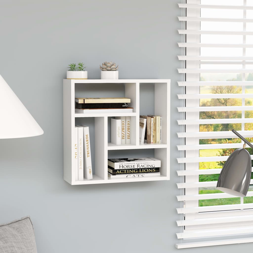 Stenska polica bela 45,1x16x45,1 cm iverna plošča