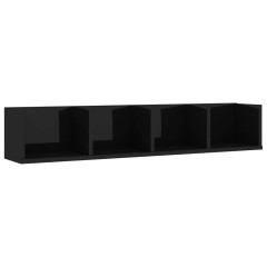 Stenska polica za CD plošče visok sijaj črna 100x18x18 cm