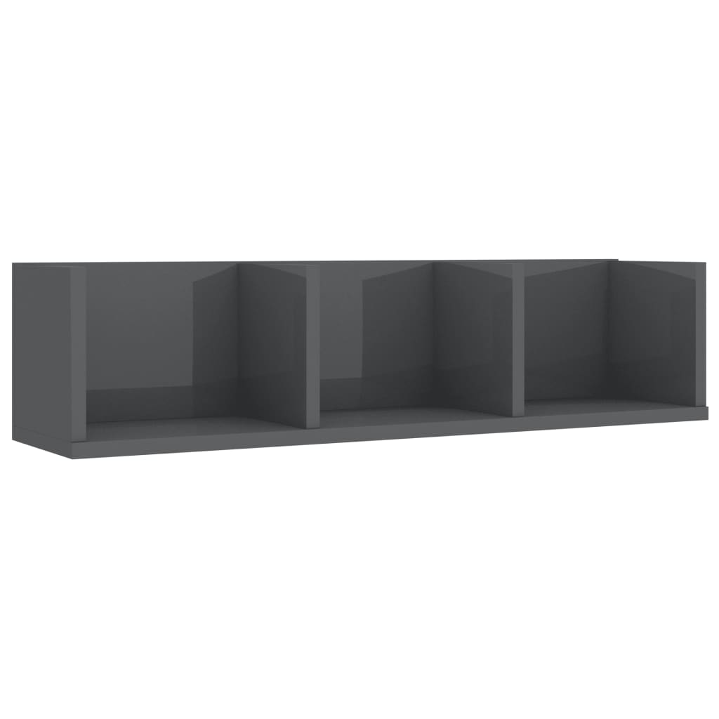 Stenska polica za CD plošče visok sijaj siva 75x18x18 cm