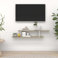 Stenska TV polica bela in sonoma hrast 125x18x23 cm