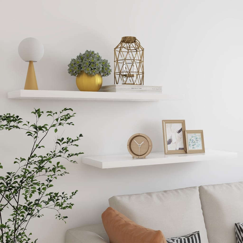 Stenske police 2 kosa barva hrasta in bela 90x23,5x3,8 cm MDF