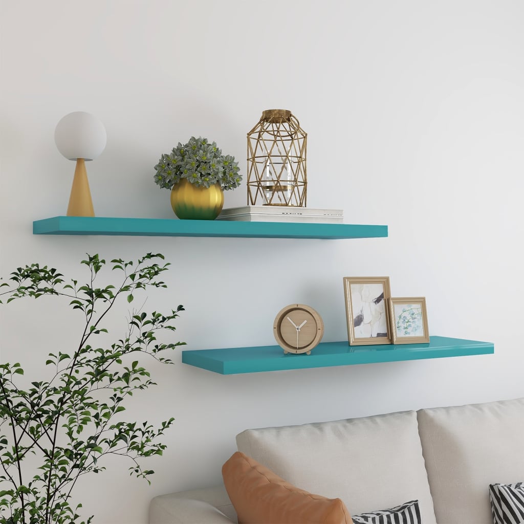 Stenske police 2 kosa modre 90x23,5x3,8 cm MDF