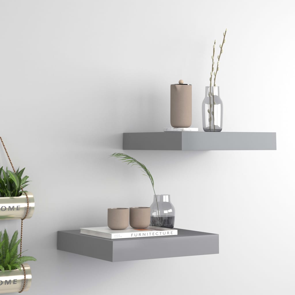 Stenske police 2 kosa sive 23x23,5x3,8 cm MDF