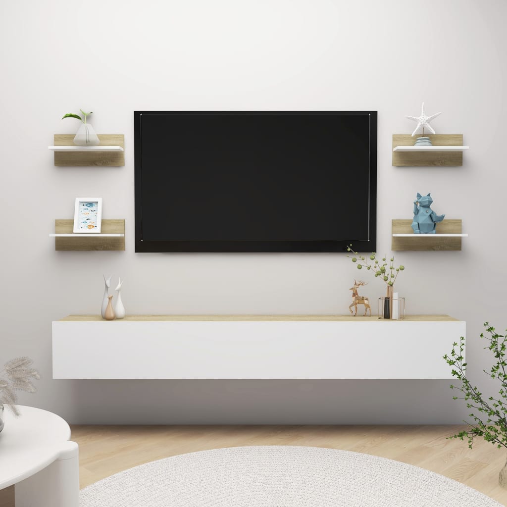 Stenske police 4 kosi bele in sonoma hrast 40x11,5x18 cm