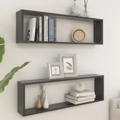Stenske police kockaste 2 kosa sive 100x15x30 cm iverna plošča