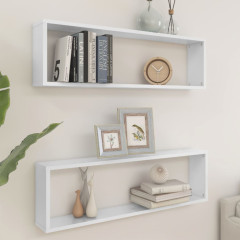 Stenske police kockaste 2 kosa visok sijaj bele 100x15x30 cm