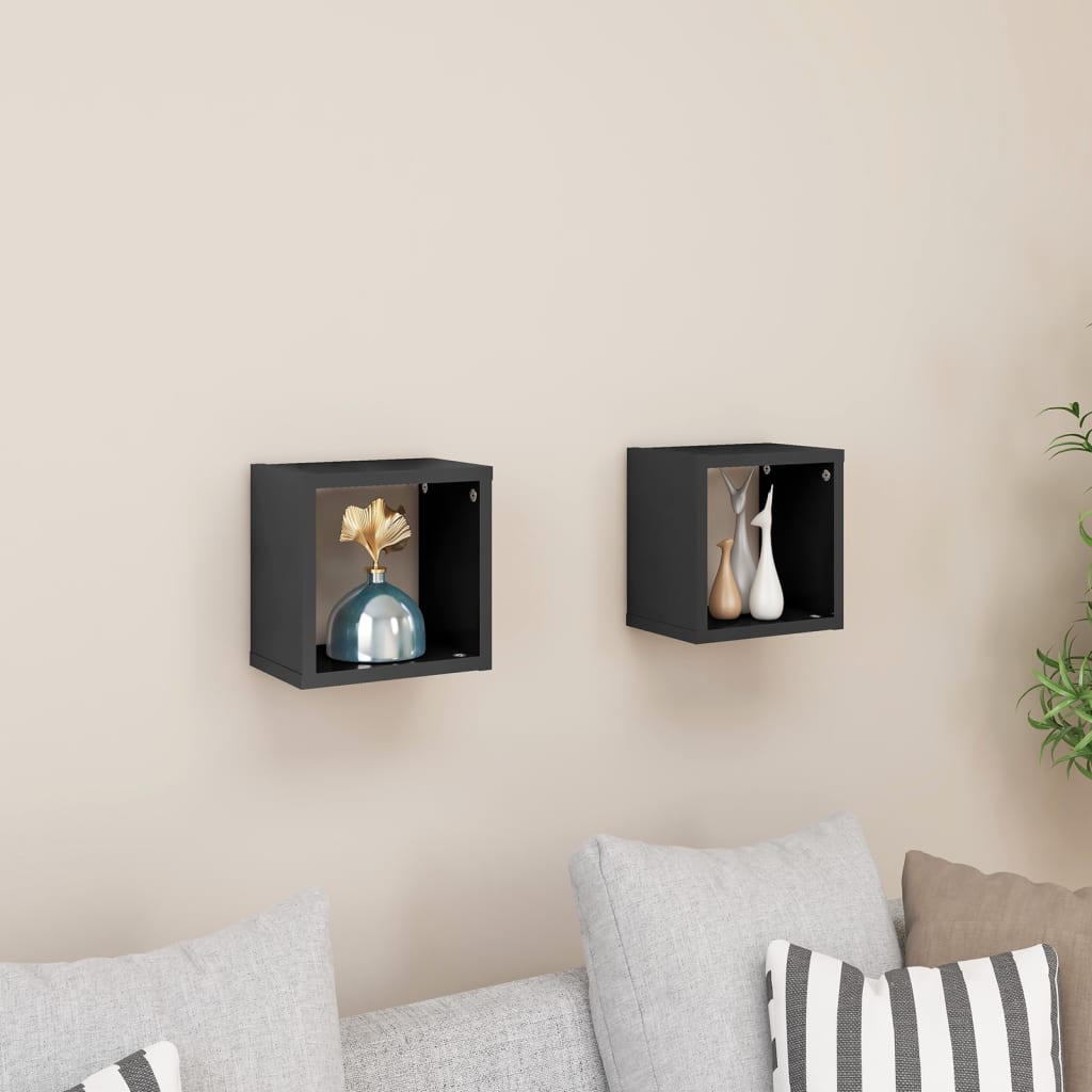 Stenske police kockaste 2 kosa visok sijaj sive 22x15x22 cm