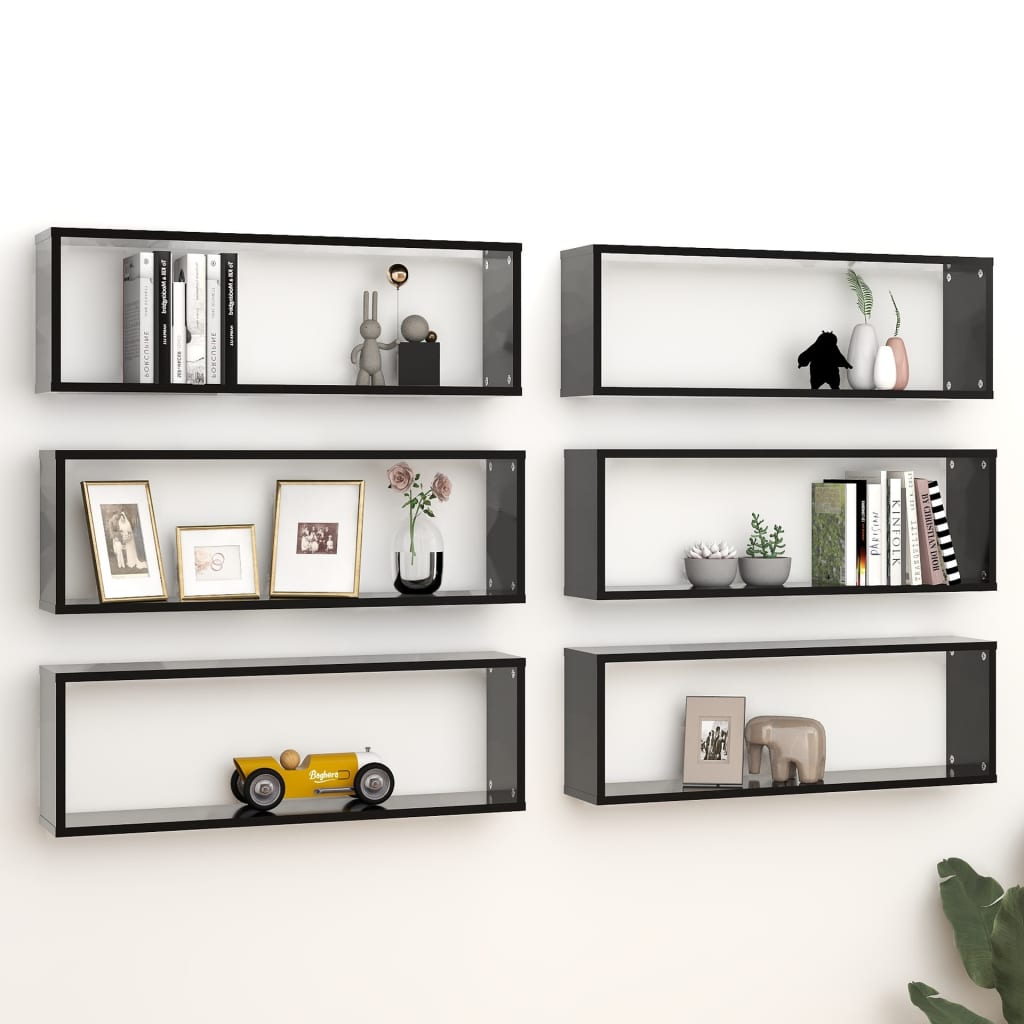 Stenske police kockaste 6 kosov črne 80x15x26,5 cm