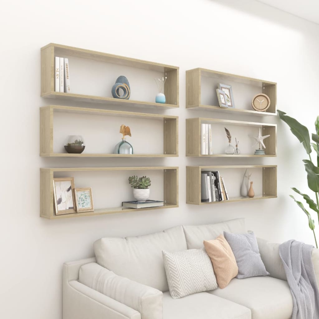 Stenske police kockaste 6 kosov sonoma hrast 100x15x30 cm