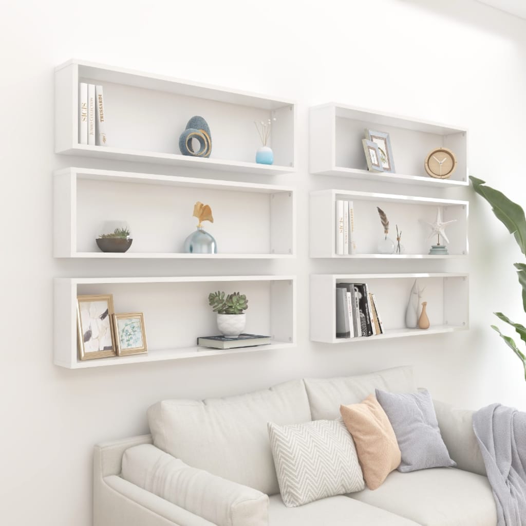 Stenske police kockaste 6 kosov visok sijaj bele 100x15x30 cm