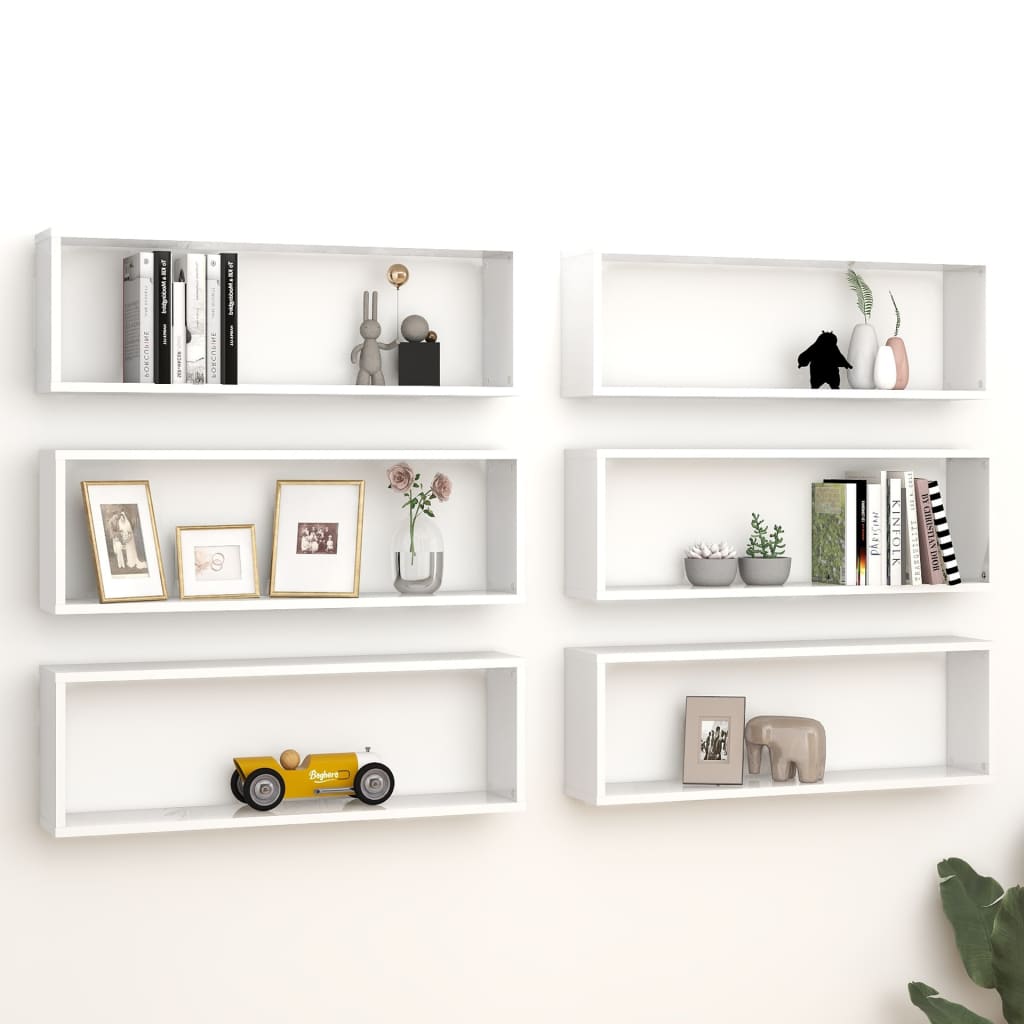 Stenske police kockaste 6 kosov visok sijaj bele 80x15x26,5 cm