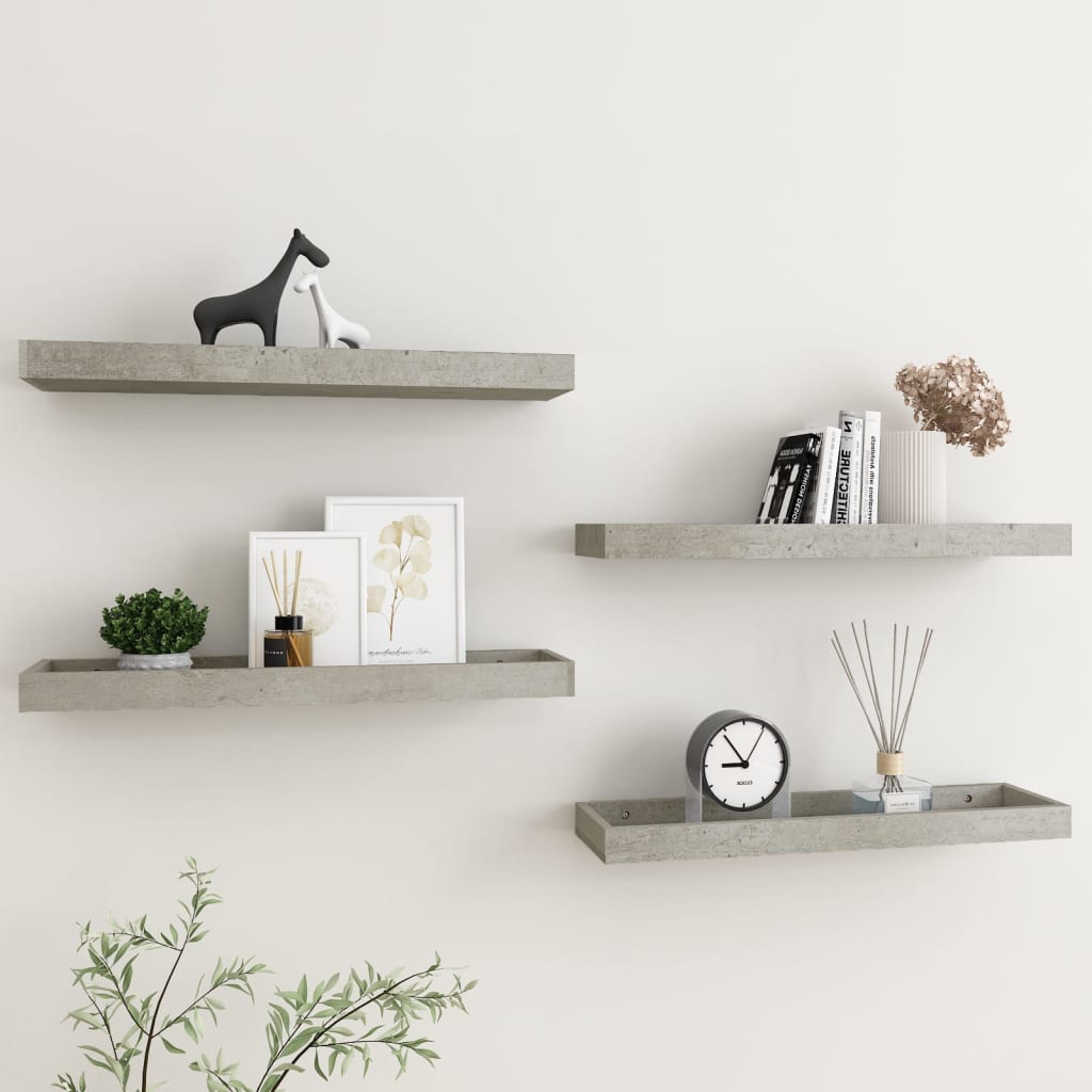 Stenske police Loggia 4 kosi betonsko sive 60x15x4 cm MDF