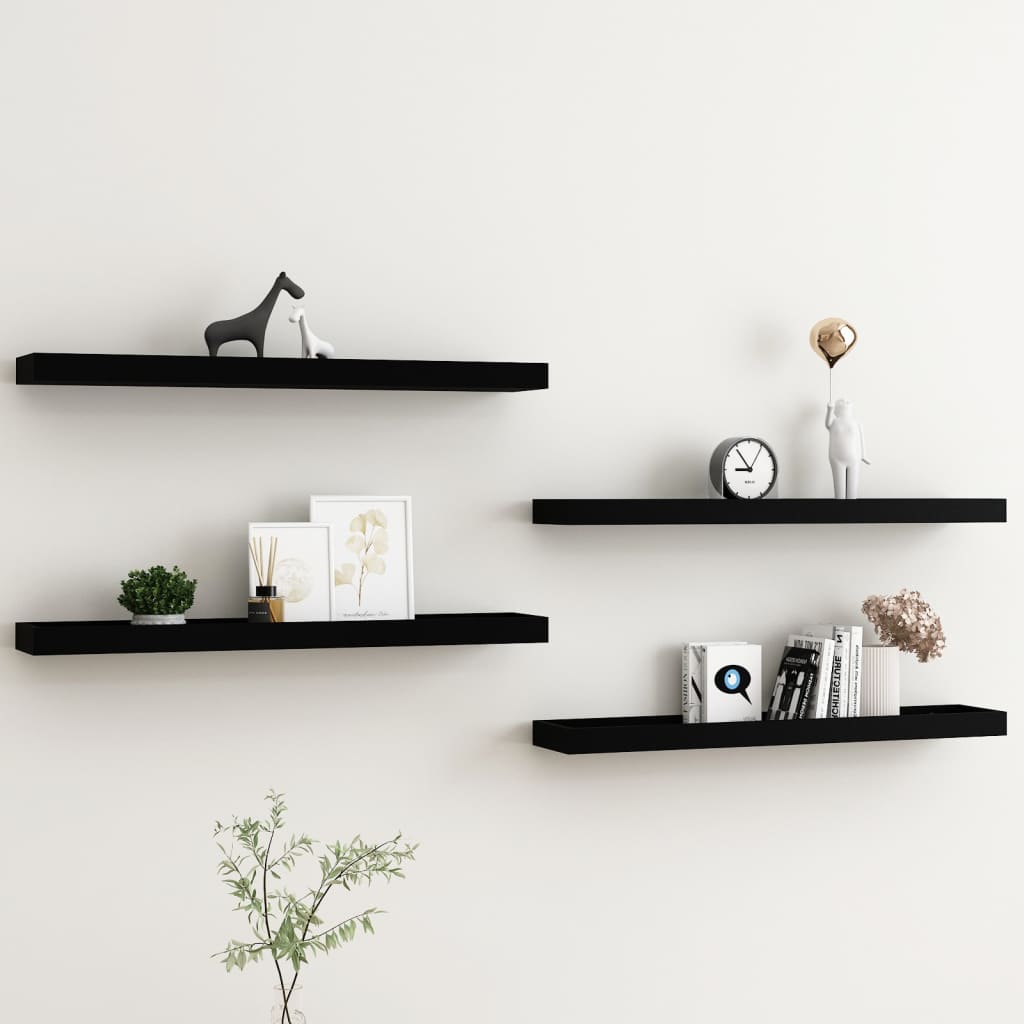 Stenske police Loggia 4 kosi črne 80x15x4 cm MDF