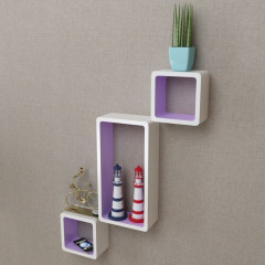 Stenske police v obliki kocke 6 kosov bele in vijolične