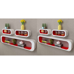 Stenske police v obliki kocke 6 kosov rdeče in bele